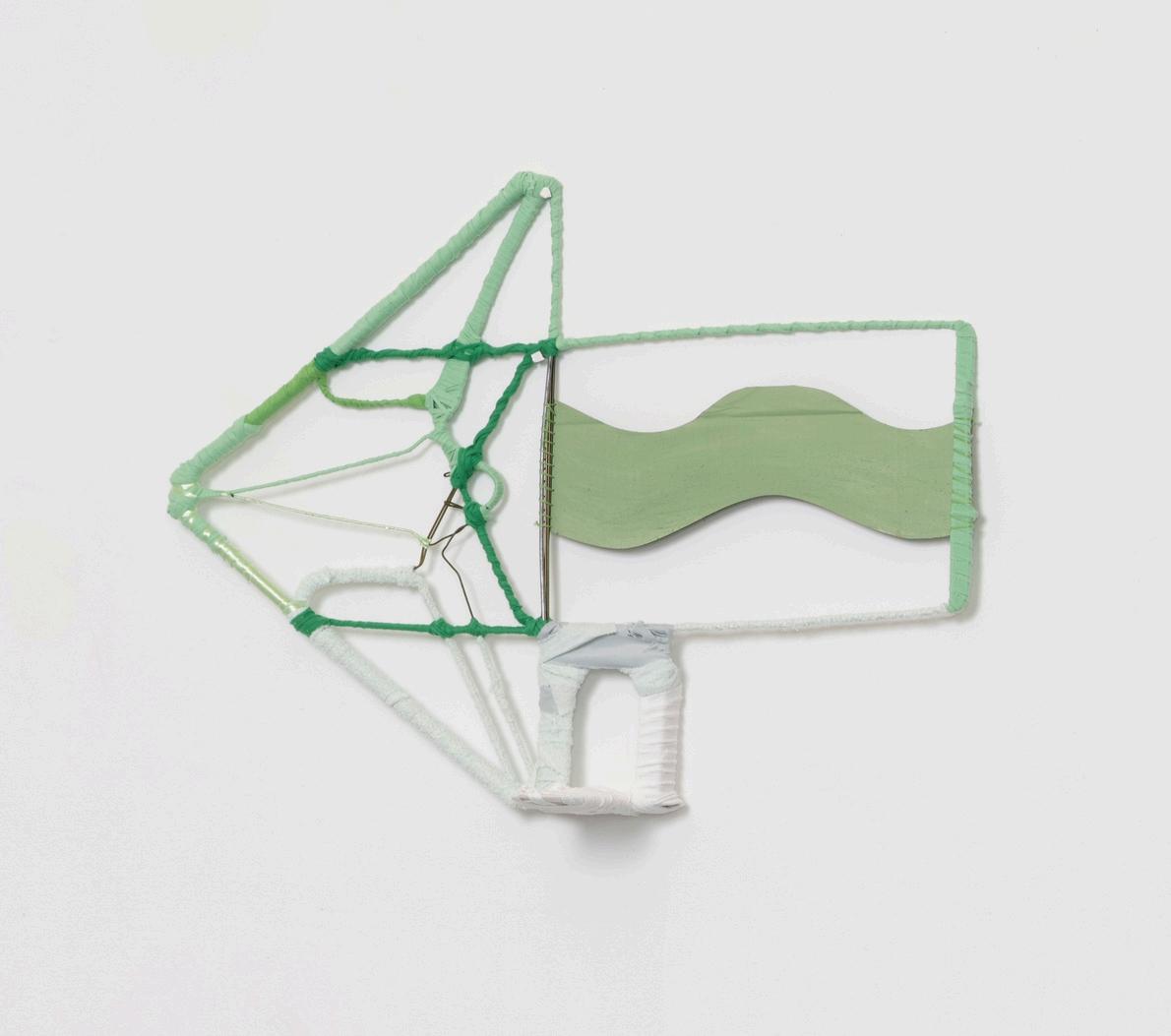 33) Russe l F oersch, C oud/card(p anter) 2022-25 acryl c paint, model ng paste and graph te on reta l card w th wooden dowel