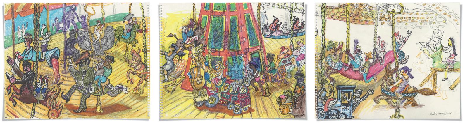 1) Tennessee Fox Trot Carousel, 2025 ink on paper14 x 52 50 in