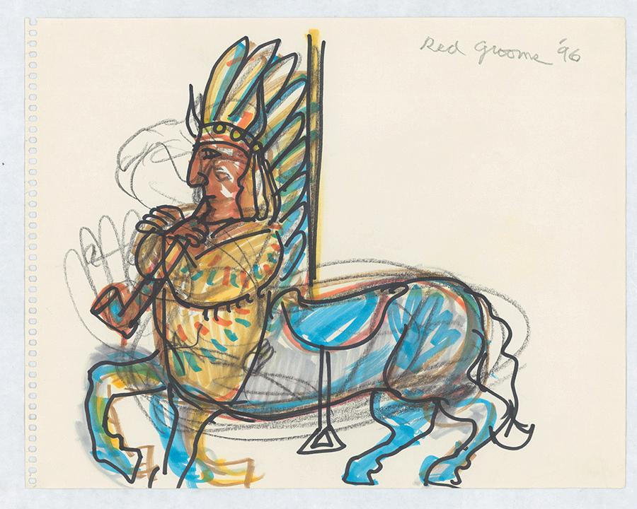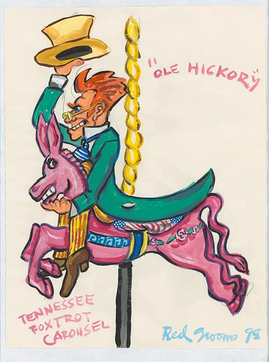 Grooms grew up in Nashville and showed a fascination with art at an early age. He took classes at the Tennessee State Children’s Museum, worked for the Nashville artist Juanita Green Williams at her studio on West End Avenue, attended Hillsboro High School, where, during his senior year, he and his friend Walter Knestrick exhibited their paintings at Myron King’s Lyzon Gallery in Nashville. He studied professionally at the School of the Art Institute in Chicago, Nashville’s Peabody College, and the New School in New York City. Since the early 1960s his work has been widely exhibited, admired, and collected. Since Ruckus Manhattan, his acclaimed exhibition at Marlborough Gallery in 1976, Grooms has staked his claim as one of America’s most original, inventive, and popular artists. He has received numerous awards and commissions throughout his career, including the National Academy of Design’s Lifetime Achievement Award in 2003. His work can be found in more than forty public institutions, including his monumental “Bus” which was installed this year as a permanent part of the new Rotterdam Museum of Migration. Presently, a large portion of Ruckus Manhattan is on view at the Brooklyn Museum of Art. He continues to work in his Manhattan studio every day - or at least when he is not in his Tennessee studio in Beersheba Springs.