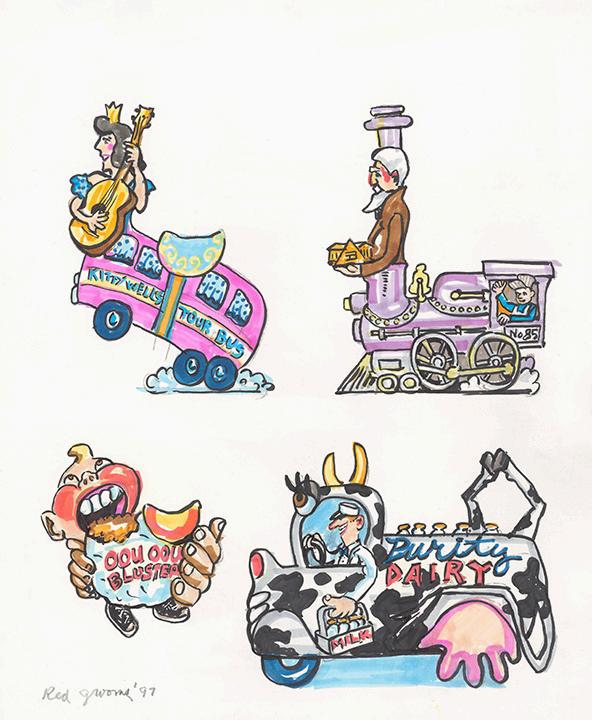 3) Kitty Wells - Eugene Lewis - Purity Dairy Truck - Goo Goo Boy, 1997, ink on paper17 x 14 in