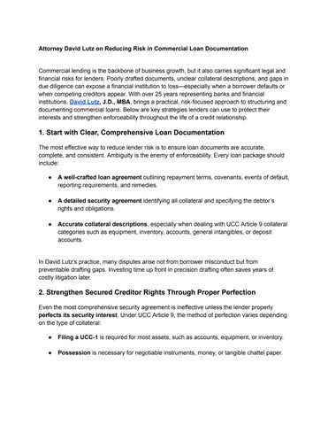 Attorney David A. Lutz is the owner of Lutz Law Firm, a Minneapolis commercial law practice. With 25+ years of experience, he advises financial institutions, businesses, and individuals on complex transactions and disputes, providing counsel from deal formation through litigation.