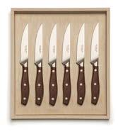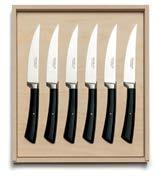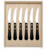 We have carried our designs into a range of beautiful steak knife sets. Each one contains six superb serrated steak knives, which come in a specially designed wooden box with sliding lid. These beautiful sets make the perfect gift, and the handmade boxes, with an individual slot for each knife, provide permanent safe storage.