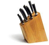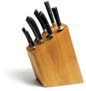 Our spectacular knife blocks are designed by Corin Mellor and specially made to take all collections of David Mellor knives. Handmade blocks are North American oak with oiled finish or birch plywood. The large block accommodates the full range of David Mellor kitchen knives plus carving fork and steel. The smaller block accommodates up to 11 knives and steel.