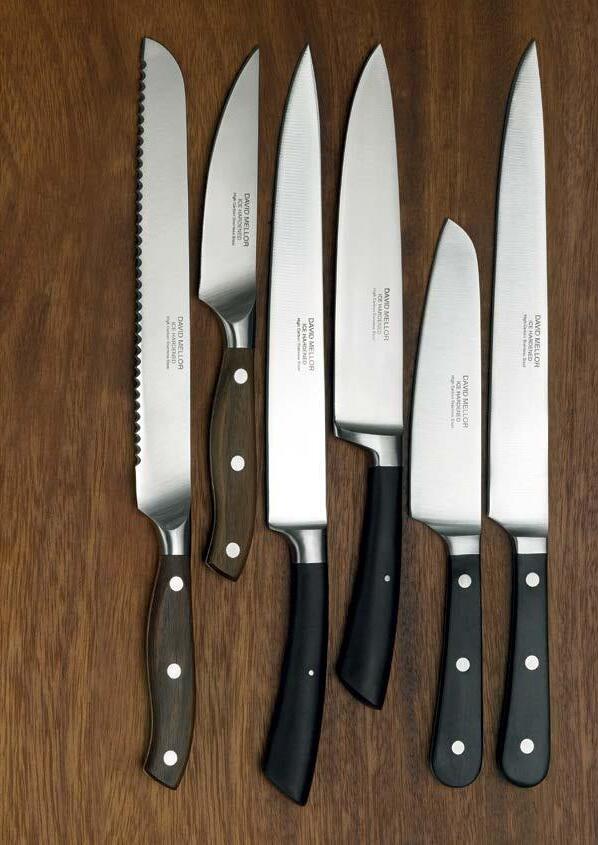 These are razor sharp knives. The high carbon stainless steel blades exploit the latest techniques of steel casting and are then ice hardened to minus 80ºc. This innovative process stabilises the metallurgical structure of the steel, creating an extremely hard and durable cutting edge. The knives are taper ground with the forging running down the full length of the handle. Each knife handle incorporates an internal back weight, giving an excellent balance and grip. All knives are supplied in individual David Mellor boxes.