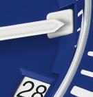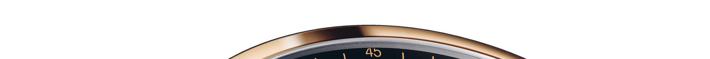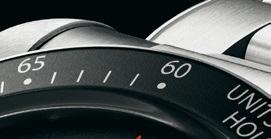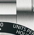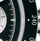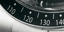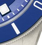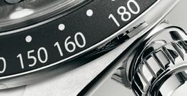 “The First Omega in Space” also features the Alpha handset lled with vintage photoluminescent SuperLumiNova. Other retro features include a vintage Omega typeface, and a sapphire crystal glass that mimics the original domed hesalite (which is a form of acrylic: tough and exible but more susceptible to scratches than sapphire). The watch contains another 21st-century upgrade, the much-praised Co-Axial Master Chronometer Calibre 3861 movement, which is rated to 15,000 gauss, a measure of its anti-magnetic properties, as certi ed by the Swiss Federal Institute of Metrology (METAS).