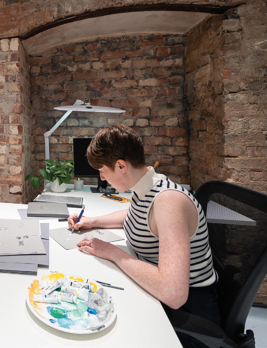 the remodelling of a treasured heirloom. ‘The new showroom is designed to show our clients the full journey of design, from the initial concept and seed of an idea through to the goldsmiths completing the creation,’ says in-house jewellery designer Vix Smith. ‘My design studio is situated in the showroom so customers can wander through to see what new designs are being created and chat about the design process. The walls are covered with original design artwork, so they can see how the design process progresses forwards to the nished item.’