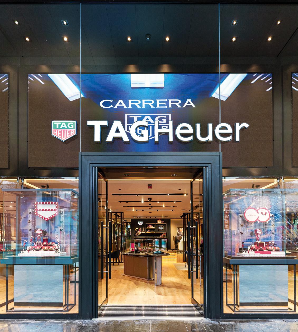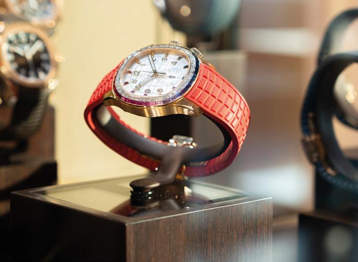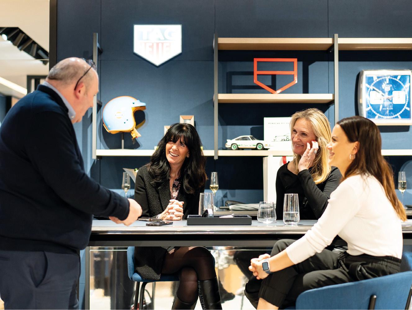 We are the UK’s largest TAG Heuer boutique and, as the brand has a rich heritage linked to the world of sport, we have plenty of motorsport memorabilia including racing helmets and artworks including a mural by a local artist of a Porsche Carrera chassis. A highlight is our golf simulator which allows clients to practise their swing while trying the special golf edition of our Connected smartwatch. We opened just under a year ago and already we’ve held some memorable client events in our private lounge area, including exclusive watch reveals and a group lesson with a professional PGA golf coach. Sport and TAG Heuer go hand in hand, and it’s a pleasure to share the brand’s history with clients who aren’t yet familiar with some of those iconic connections. The story that stands out the most to me is that of the Carrera watch collection, rst debuted in 1963 and inspired by the Mexican Carrera Panamericana, a highly dangerous race that took place in the 1950s. An enduring classic, the Carrera really encapsulates a slick sense of daring. In fact, one watch that’s currently creating a real buzz is our exclusive tourbillon edition of the Carrera “Glassbox”, released to celebrate the model’s 60th anniversary last year. It’s very rare, so people travel a long way to see its craftsmanship at close range. Really this is what DMR is all about: allowing people to enjoy the brands, try things on and get a feel for what really suits them, with experts on hand to help.