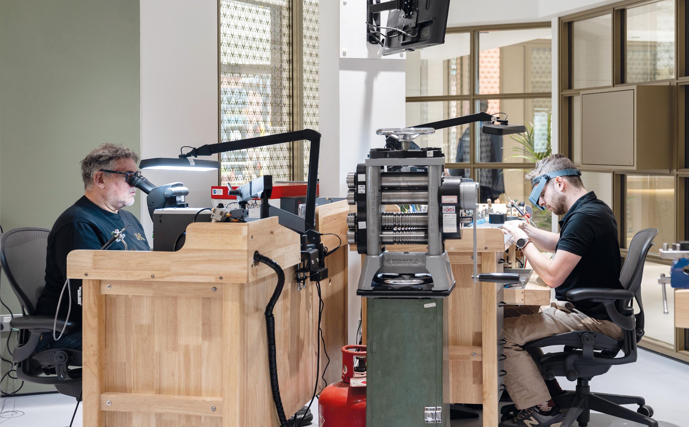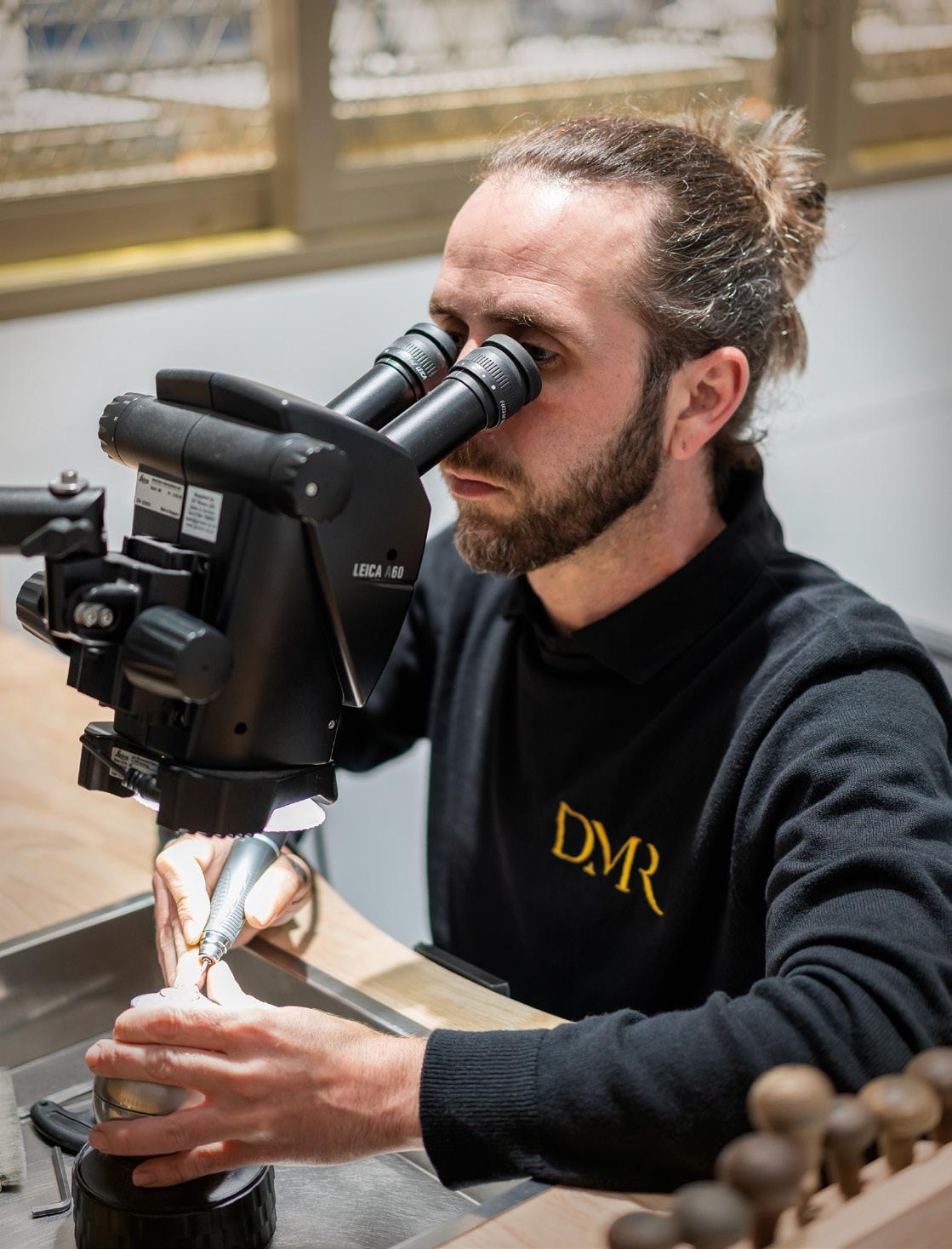 Our re t in spring 2022 was about transforming the DMR experience into something much more dynamic, fun and sociable for our customers, and the showroom is now a discreetly curated environment split into distinct zones. You feel relaxed and totally indulged here, boosted by the fact that we have trained watchmakers and in-house goldsmiths on site who are happy to demonstrate their skills and discuss any questions you may have. In fact, our master goldsmith, Rupert, has been with DMR for over 35 years, having started out as Mr Robinson’s bench apprentice. I have worked for the company for over 20