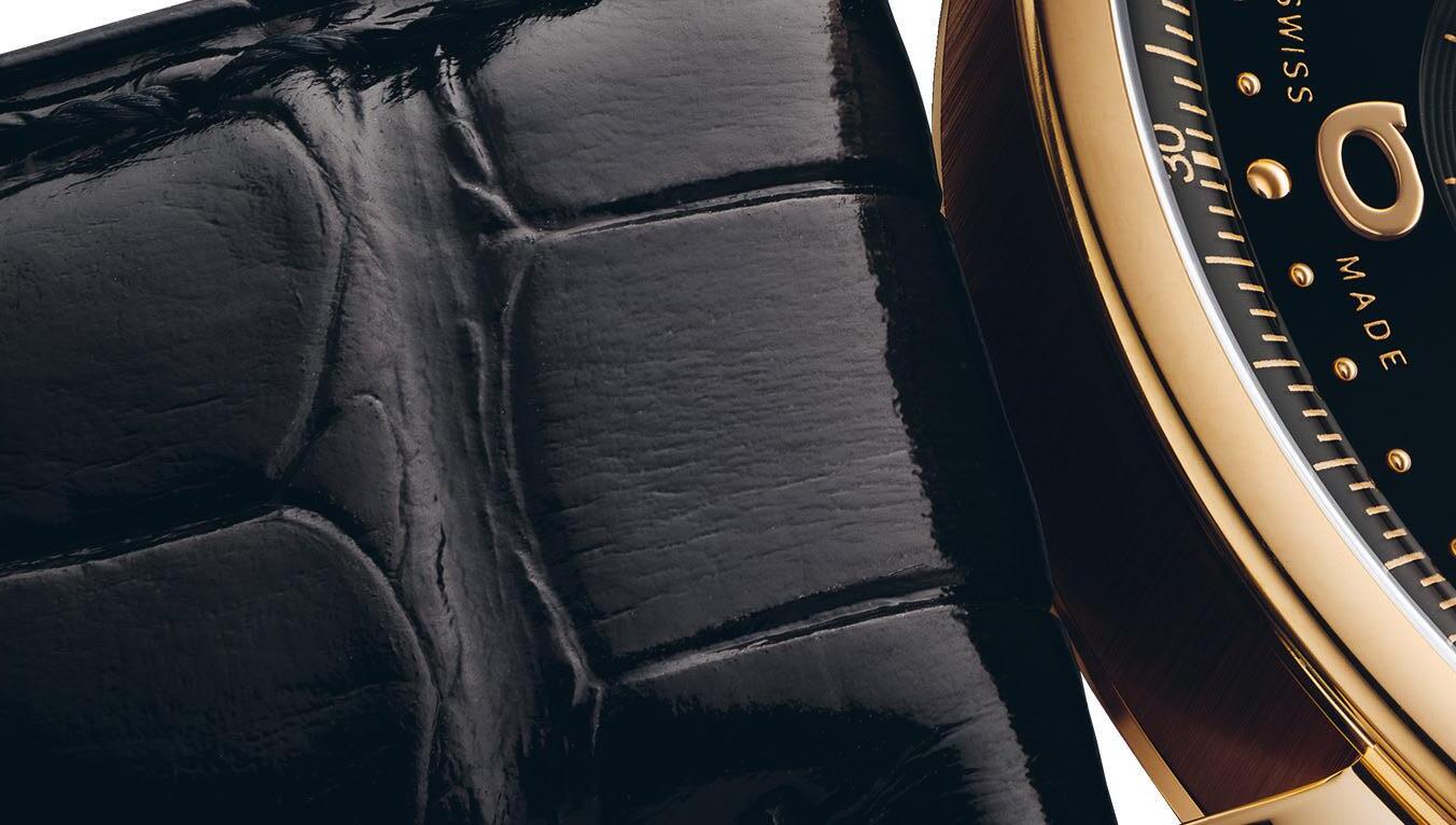 In this year’s relaunched Portugieser collection, technical mastery is balanced with impeccable panache. New colours have been added – a soft, desert-at-dusk shade appropriately called Dune, and the glossy black Obsidian dial shown here – a hard and brittle volcanic glass – created with 15 layers of lacquer. It pairs beautifully with the case in the warm tones of IWC’s in-house proprietary rose gold, called Armor Gold.