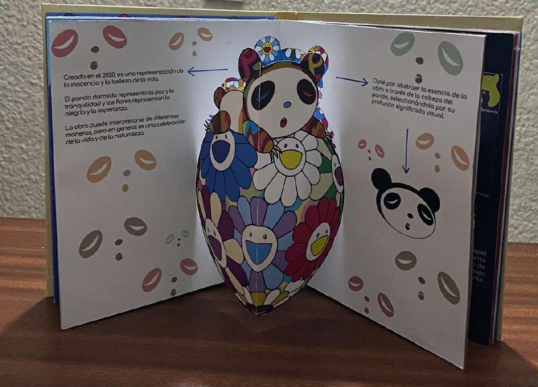 El panda dormido representa la paz y la tranquilidad y las flores representan la alegría y la esperanza.