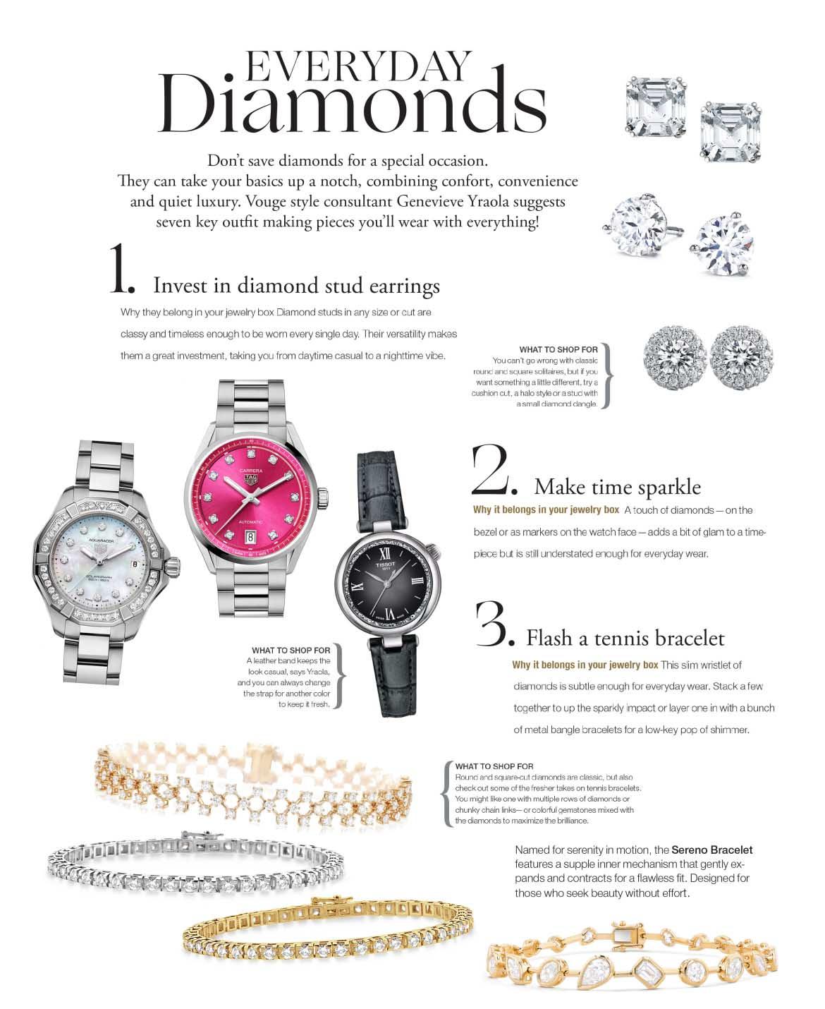 Don't save diamonds for a special occasion. They can take your basics up a notch, combining comfort, convenience and quiet luxury. Style consultant Genevieve Yraola suggests seven key outfit-making pieces you’ll wear with everything.