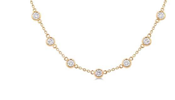 Why it belongs in your jewelry box. A delicate, understated diamond necklace works as well with a cocktail dress as with a T-shirt and jeans. It’s also an all-season accessory, looking perfectly appropriate with a white button-down shirt or a skinny tank top. You can also layer it with other similar-weight necklaces for an on-trend look.