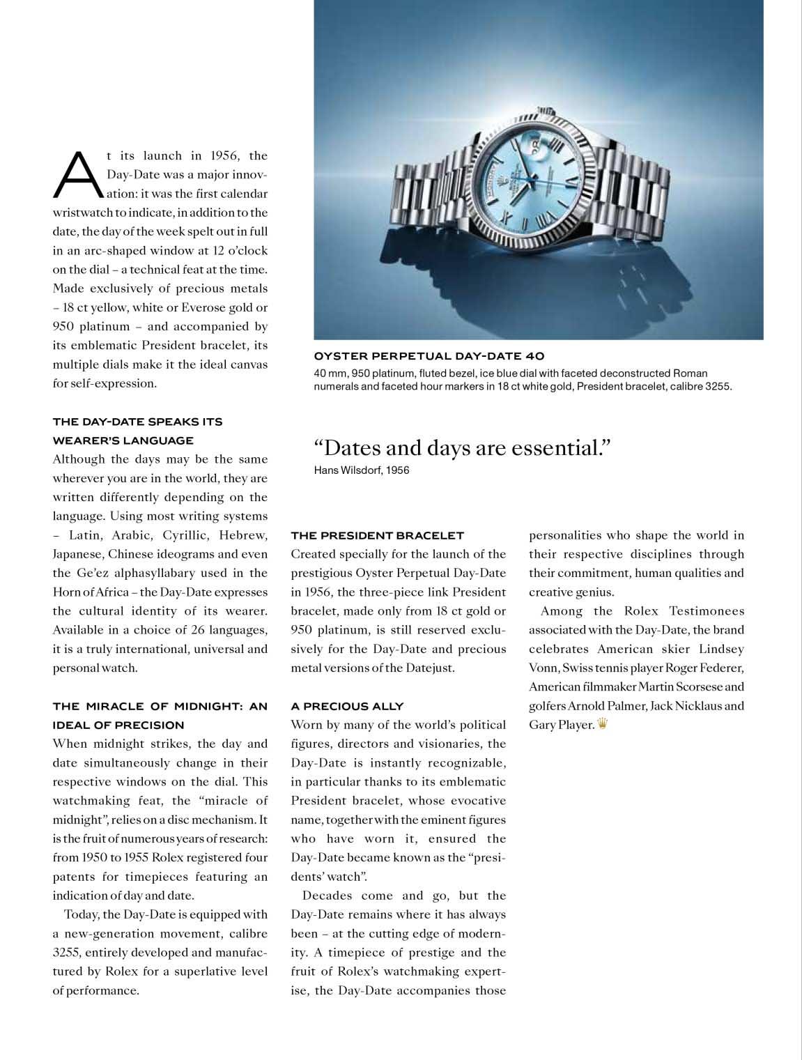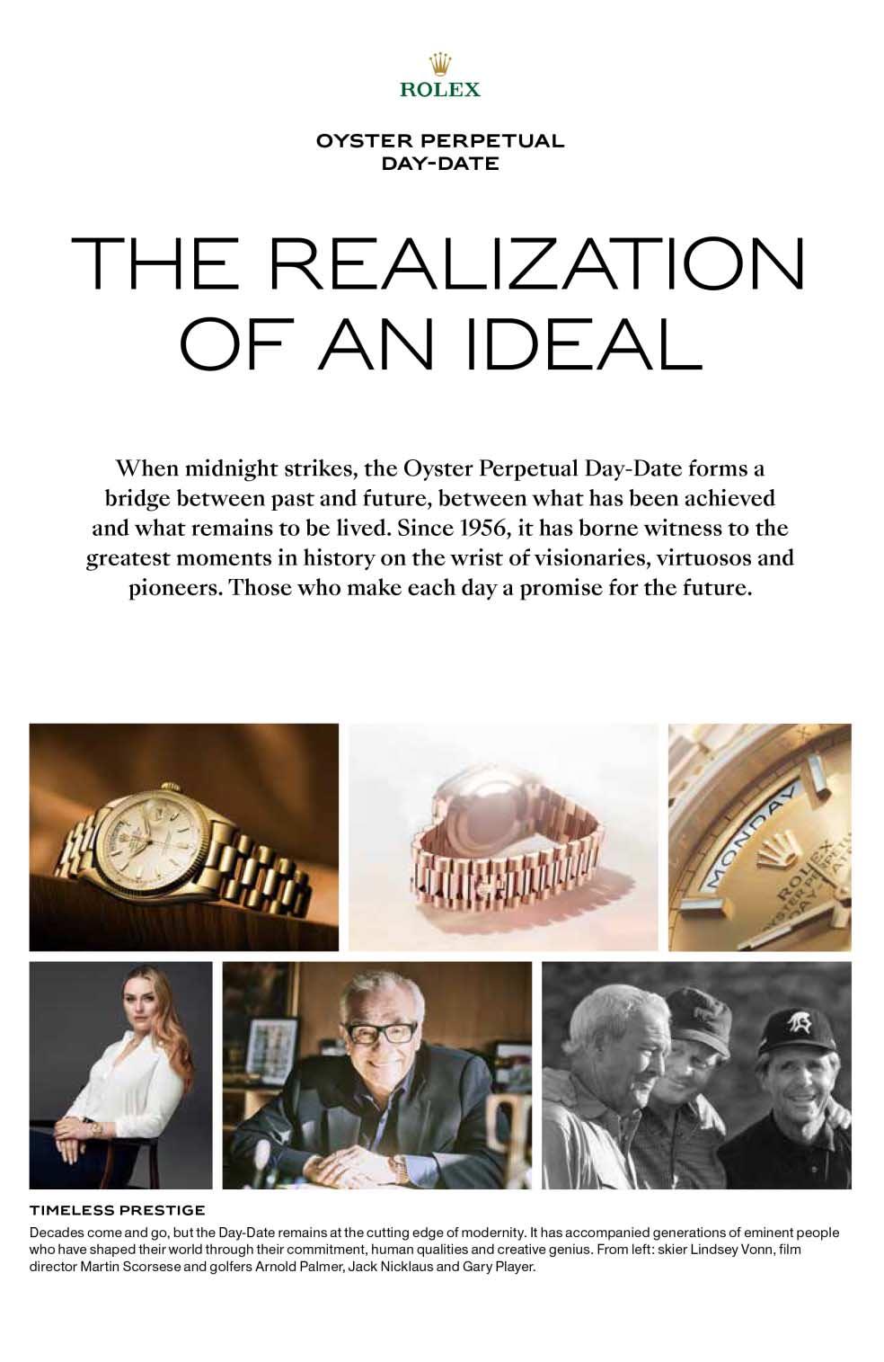 The Rolex Oyster Perpetual Day-Date has borne witness to history on the wrists of visionaries and pioneers like Lindsey Vonn, Martin Scorsese and Arnold Palmer.