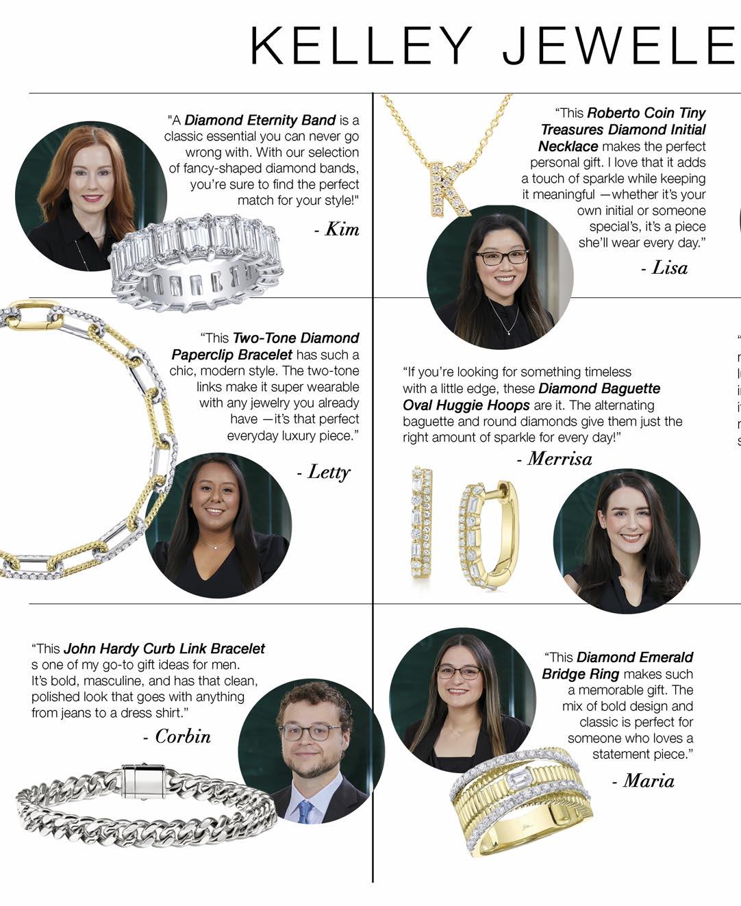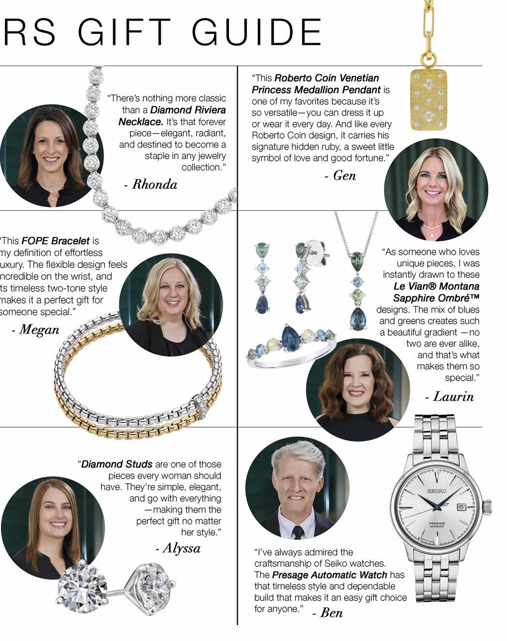 50 OUR GIFT GUIDE KELLEY JEWELERS ASSOCIATES share their personal picks for the best pieces to give the jewelry and watch lovers on your list.