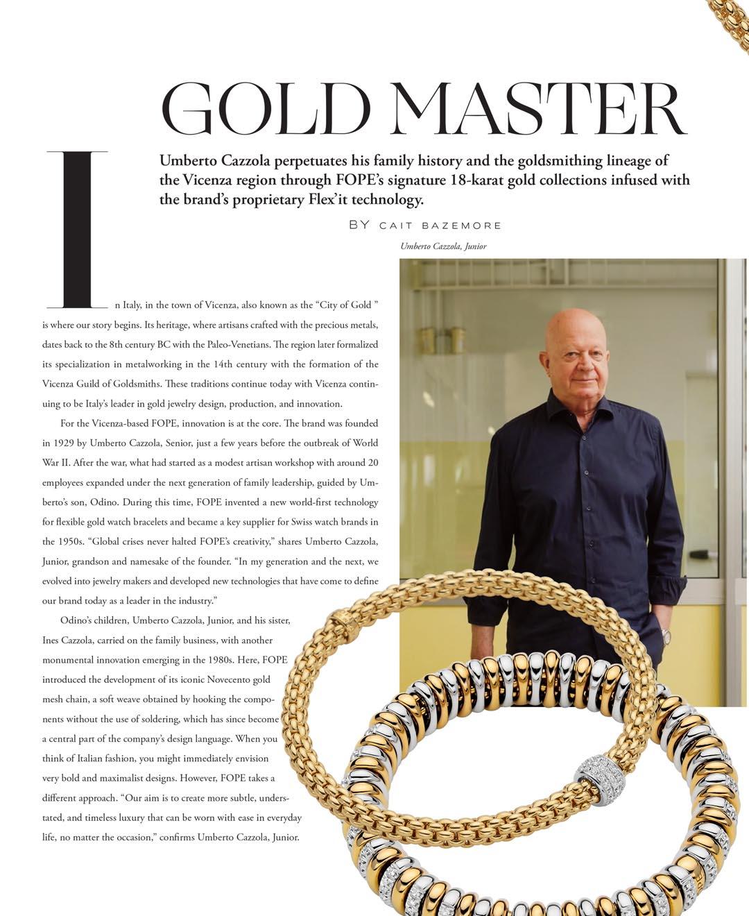 Umberto Cazzola perpetuates his family history and the goldsmithing lineage of the Vicenza region of Italy through FOPE’s signature 18-karat gold collections.