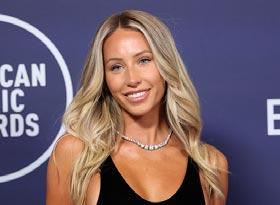Influencer and entrepreneur Alix Earle evoked old-time Hollywood glamour in a riviera line necklace with graduated diamonds at the 51st American Music Awards at the Fontainebleau in Las Vegas, Nevada.