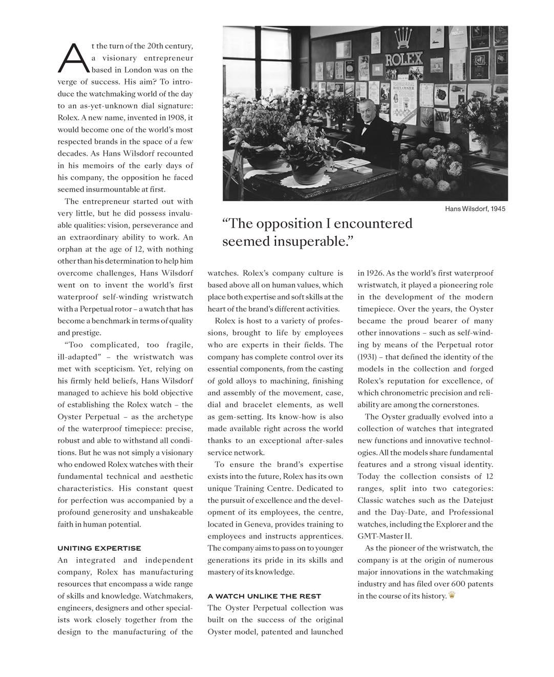 From its creation by Hans Wilsdorf more than a century ago, Rolex’s philosophy of innovation and excellence is more present than ever.
