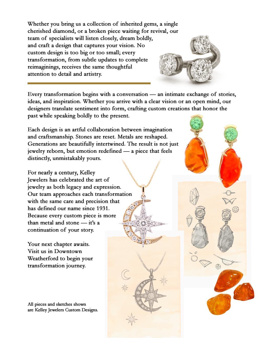 At Kelley Jewelers we believe every piece of jewelry has a story worth retelling. Our team of jewelry experts can work their magic to bring your jewelry back to life, into pieces you will cherish & wear for years to come!