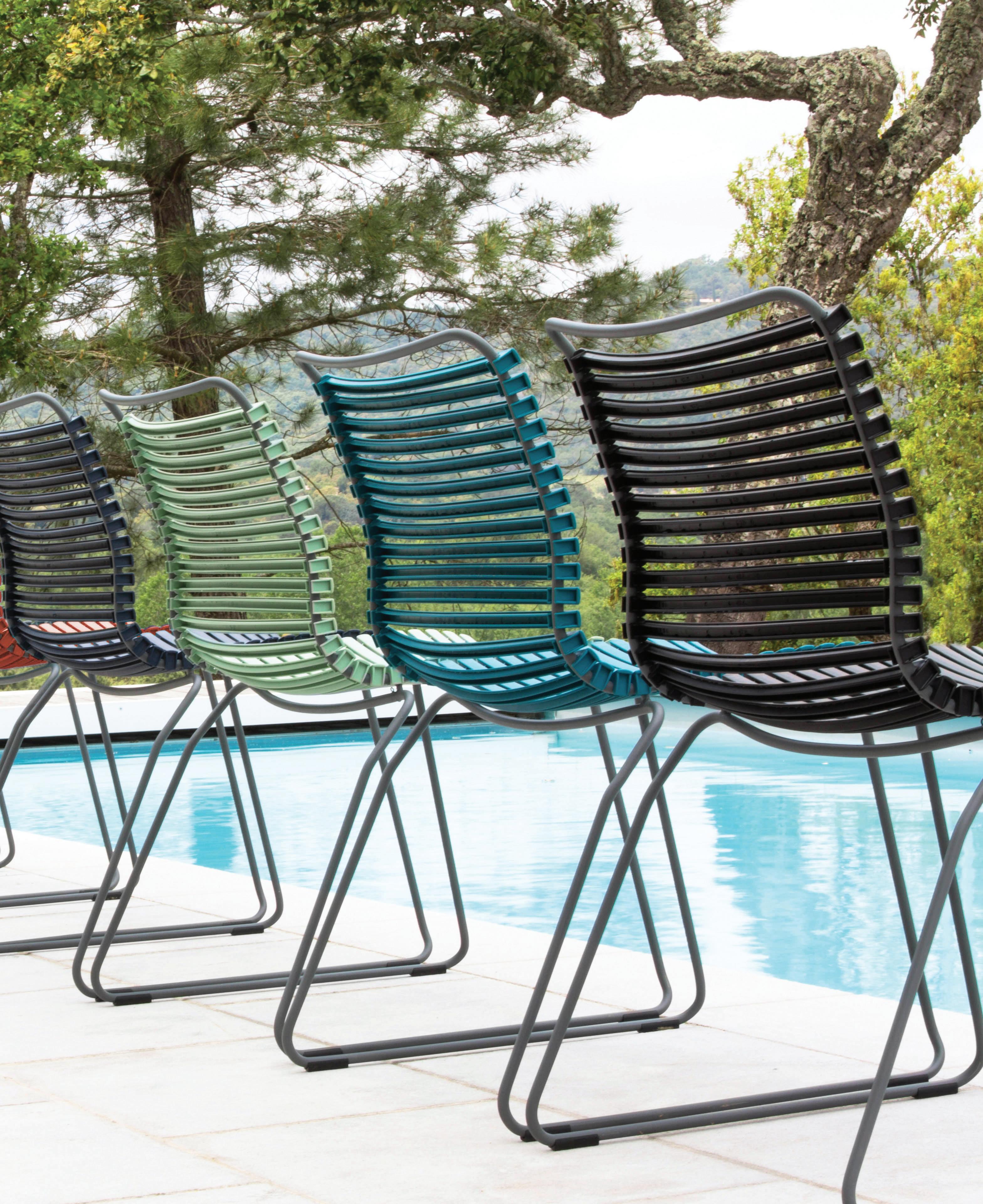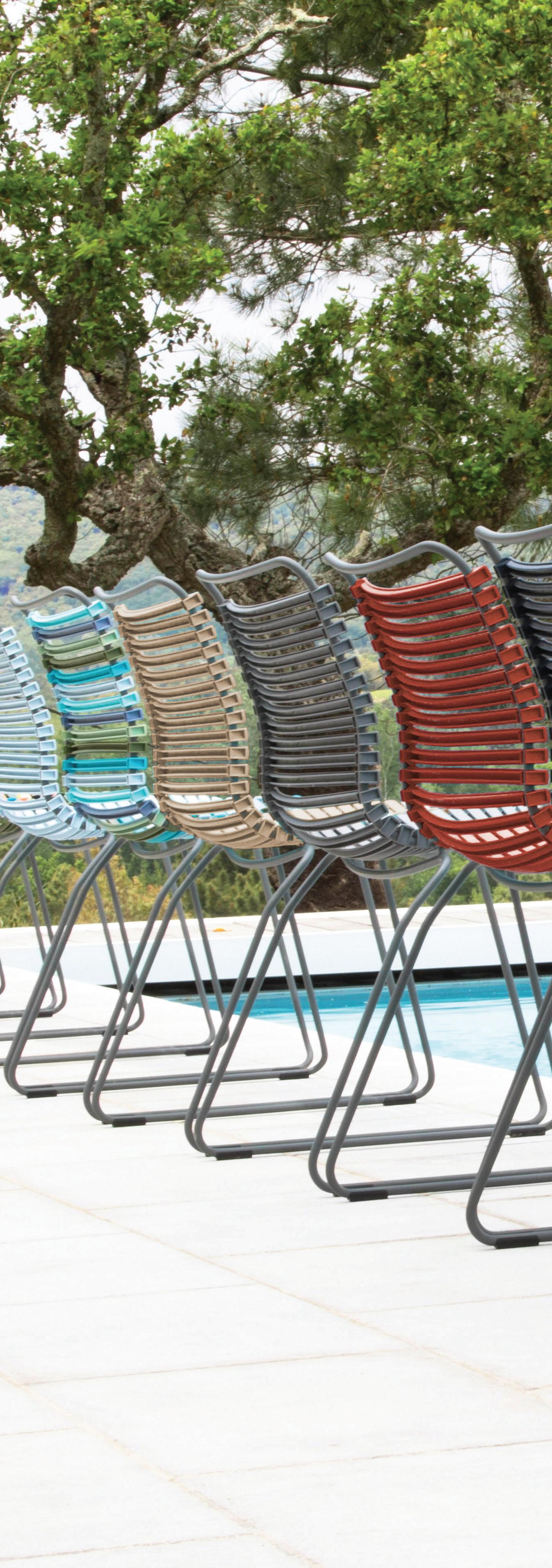 NEW! An exclusive for the Exterior Furnishings Studio, our new brand, Houe, brings Danish design and Danish innovation to our Furlong showroom. ReCLIPS is a line of chairs with wide plastic lamellas (straps) clipped on a light powder-coated aluminum frame. The lamellas are made from recycled household plastic trash, making this line of furniture not only beautiful but also environmentally friendly. The ReCLIPS Lounge Chair features sustainable bamboo armrests and matching footrest for an elegant and extremely comfortable seat.