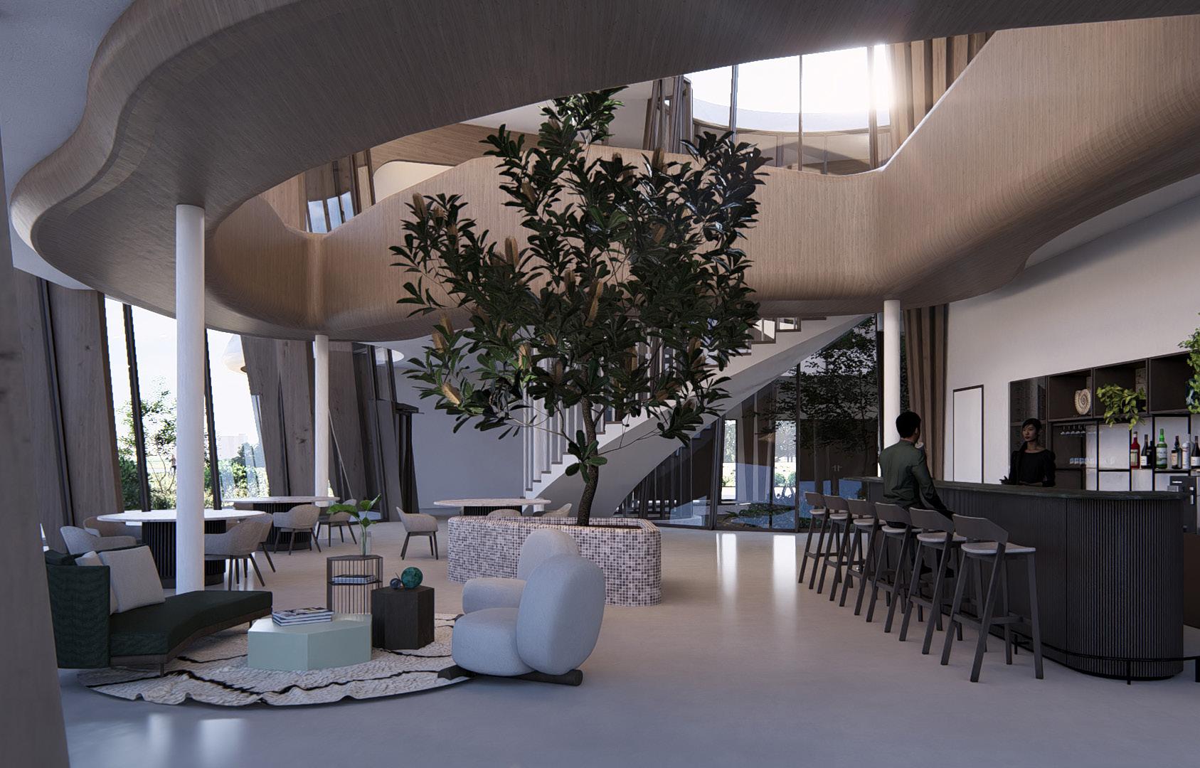Het gebouw representeert een nieuwe visie op architectuur: een plek waar mens en natuur in harmonie samenkomen. Lotus House integreert wonen, werken en recreëren in een ontwerp dat de verbinding met de omgeving centraal stelt.