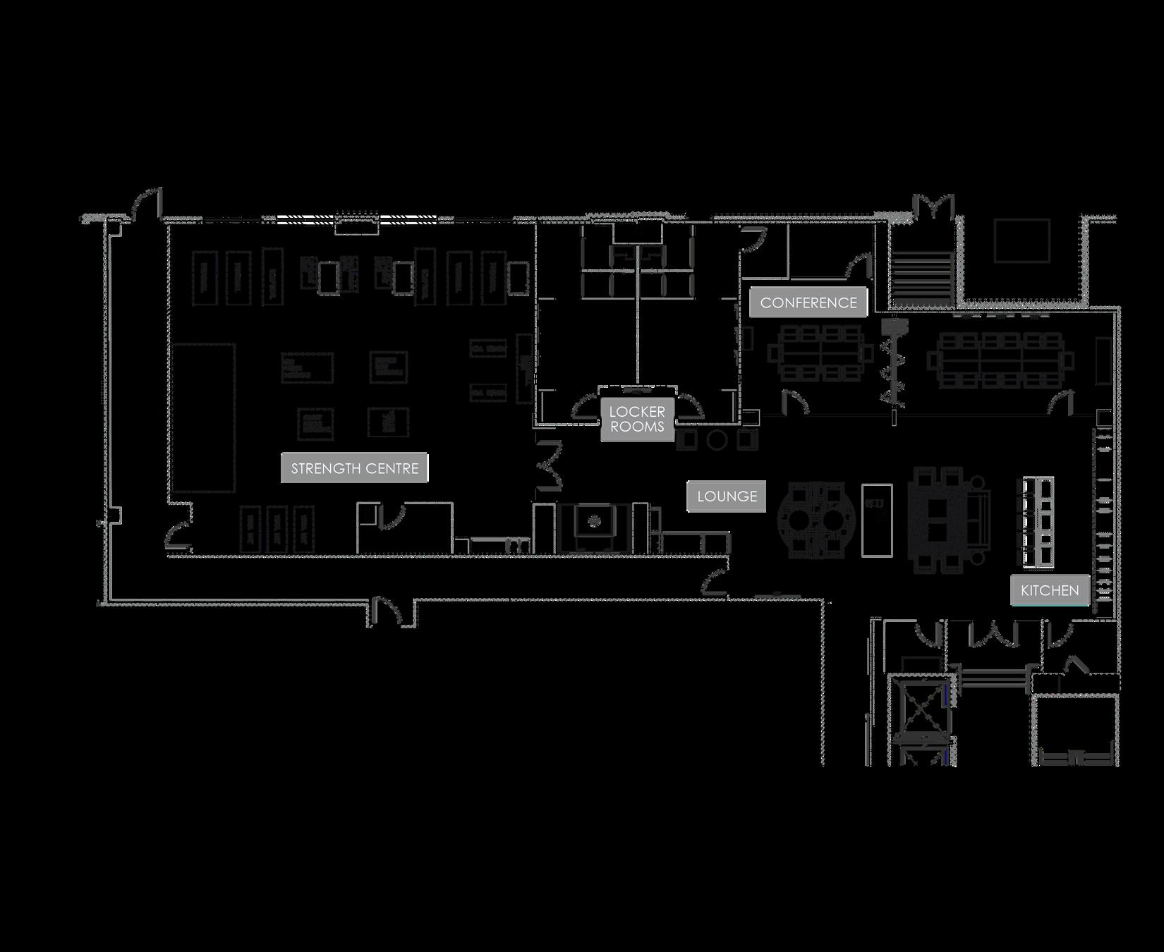 2,000 SF fitness center offers a complete line of cardiovascular and strength training equipment, with fully appointed men’s and women’s locker rooms and showers.