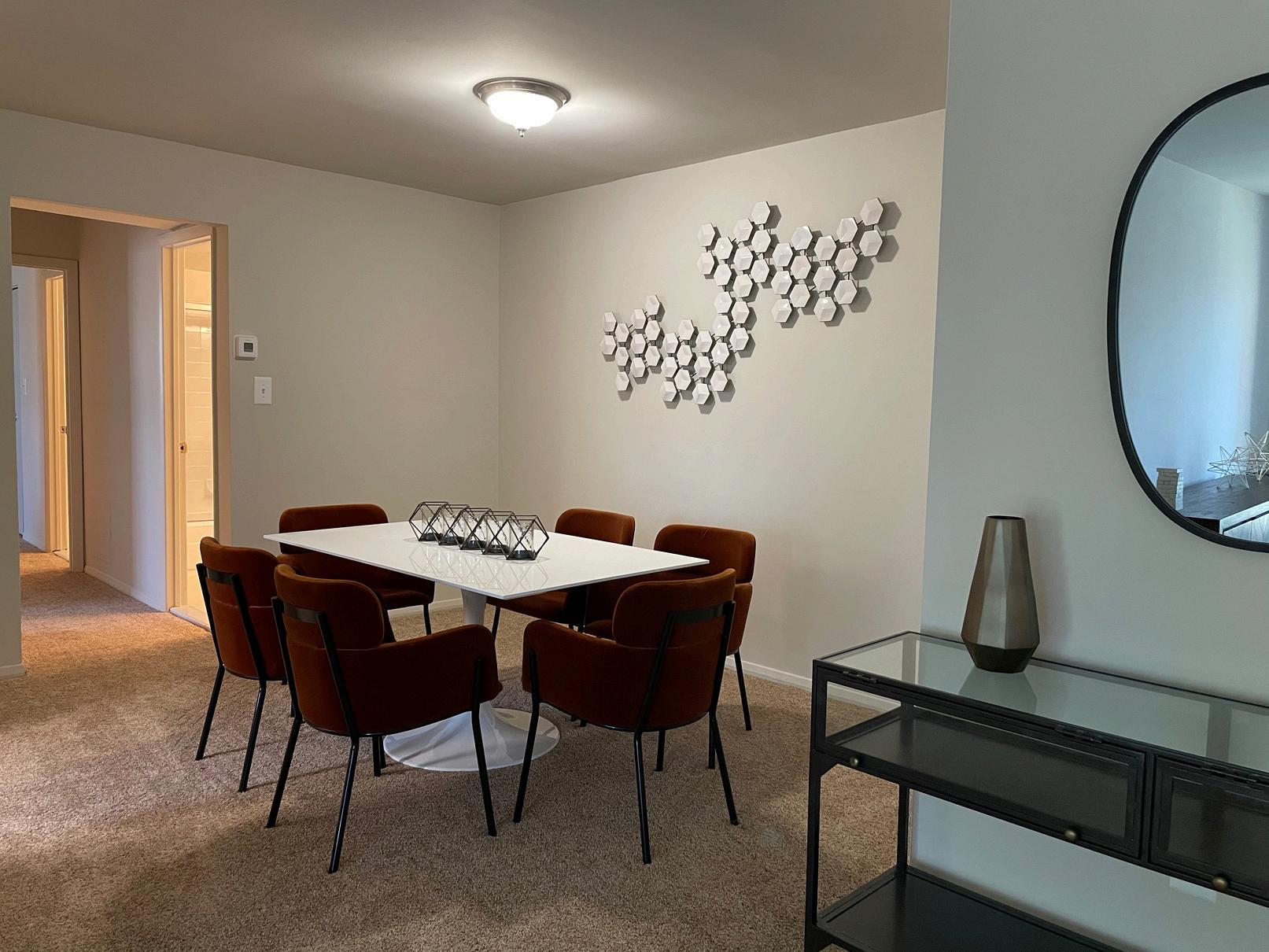 The carpets have been professionally cleaned or replaced. If you spill something on your carpet, please blot it up with a cool damp cloth immediately. After you have blotted up the majority of the spill apply a small amount of soap to the damp cloth and gently rub in a circular motion to remove the remaining soil. Rinse with a clean cloth and place a dry towel over the wet spot while it is still wet. Your carpet should be professionally cleaned once per year to prevent soilage and damage from spots, spills, and ground dirt