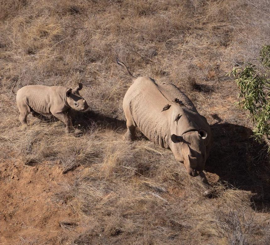 One highlight for our helicopter pilot though not an all-time record was the sighting of sixty-three rhinos in a single ight over the Ngulia Rhino Sanctuary