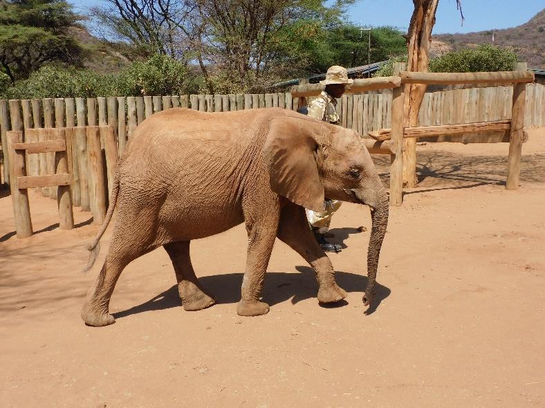 During the month, the SWT/KWS Meru Veterinary Unit attended to three cases. In Meru National Park, the team administered prophylactic vaccination against trypanosomiasis to Sep- the tracker dog attached to the Meru Rhino Canine Unit and treated Farid, an adult lion, for marked lameness and a fractured canine, both with a favourable prognosis. At Reteti Elephant Sanctuary, the team treated Ngare Mara, a juvenile orphaned female elephant, for a trunk injury, also with a favourable prognosis