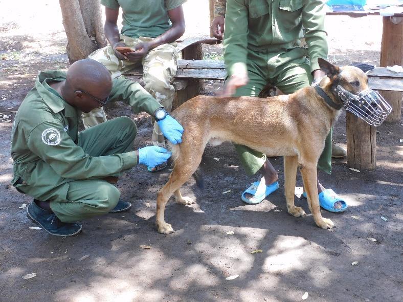 The security dog at Meru National Park plays an essential role in wildlife conservation through tracking poachers and detecting illegal activities within the Meru ecosystem. However, this canine faces a significant health risk from Trypanosomiasis, a highly fatal disease transmitted by tsetse flies. To safeguard his wellbeing and sustain his effectiveness in anti-poaching operations, the Meru Veterinary Team administered a prophylactic vaccination against Trypanosomiasis to Sep, a security dog with the Meru Canine Unit