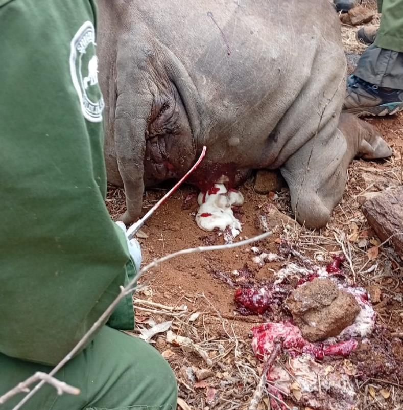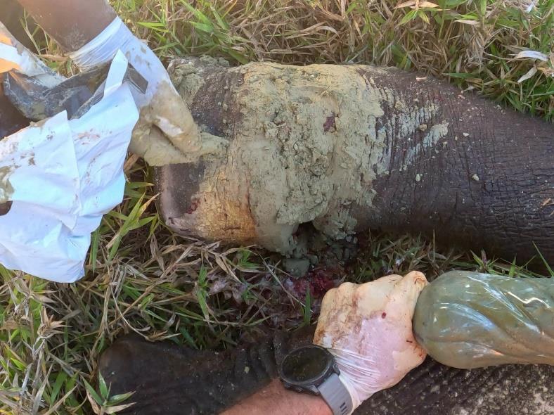 This elephant was reported to have been labouring with no signs of a foetus coming out. She was in pain and was in a poor body condition.
