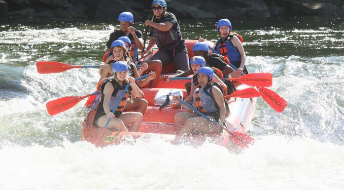 Each day, students chose two out of three outdoor activities: a ropes course, a scenic hike, or laser tag, with everyone coming together for a group whitewater rafting adventure on one of the days.