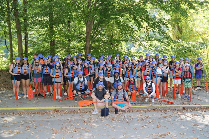On the day of white water rafting, all students geared up in life jackets for the big trip down the Gauley River. “I had been whitewater rafting before with my family on the Nantahala River in western North Carolina,” Jennings said, “but going with my friends this time made it a totally different experience We were all hyping each other up, getting splashed, and just having fun with it At one point, we even jumped off this huge rock into the water, which ended up being super fun.”