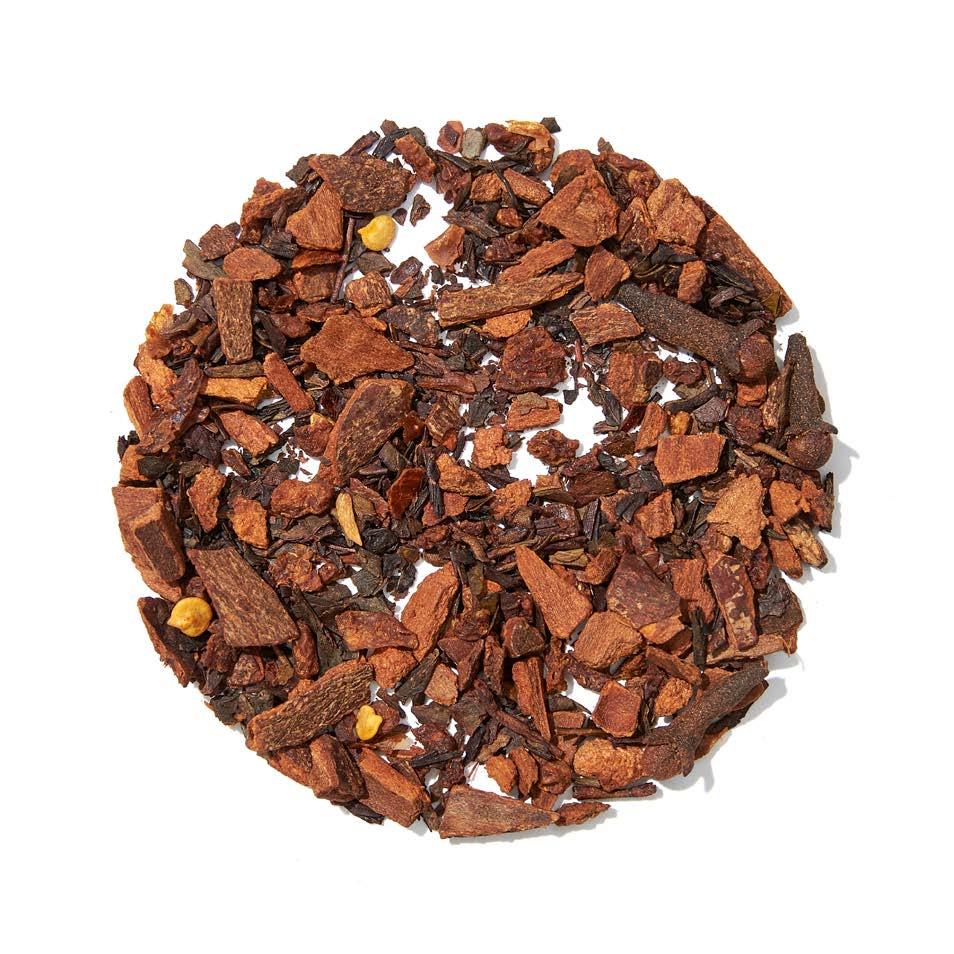 Nous avons ici voulu apporter une touche délicieusement épicée au classique de tous les temps que forment l’orange et la cannelle. Imaginez un chaï avec une touche d’agrumes. L’accord parfait avec du chocolat noir! Caféine faible