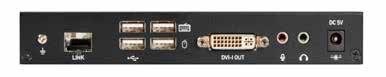 DKM Compact Extender Receiver with a CATx (140 m) port, single link DVI-D, two USB HID ports, and four USB 2.0 ports