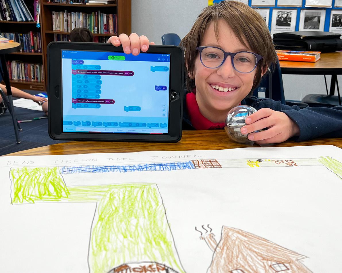 What happens when social studies and robotics come together? Combining the two fields opens up a whole new world of learning opportunities. When 5th graders learned about the Westward Expansion, they researched and mapped out settlers’ journeys in the 19th century. Then, they used their coding skills to program robotic spheres to retell and demonstrate the details of these journeys in new and exciting ways. By using robotics to bring historical events and cultural practices to life, students are more likely to be invested in their learning and provide new ways to explore and demonstrate their understanding of complex topics.