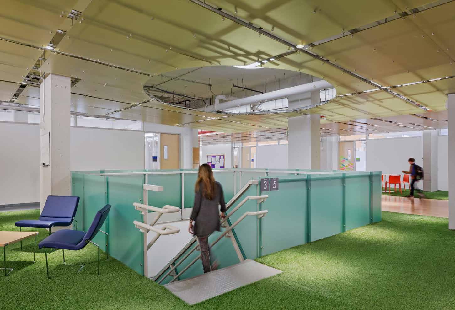In addition, some of the administrative program has been broken out and distributed opposite classrooms to provide administrative and teaching offices on each learning floor.