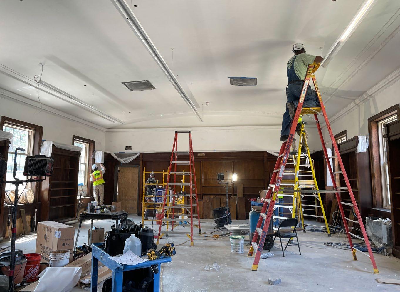 Wood paneling, decorative plaster, and wrought-iron details were carefully restored or recreated. The team matched materials by hand and eye, guided by archival photos, field investigation, and institutional memory. Throughout the project, the team sought to build a dialogue between eras. Every restored detail reinforced the idea that Douglass Hall should feel as grounded in Howard’s legacy as it is equipped for its future.