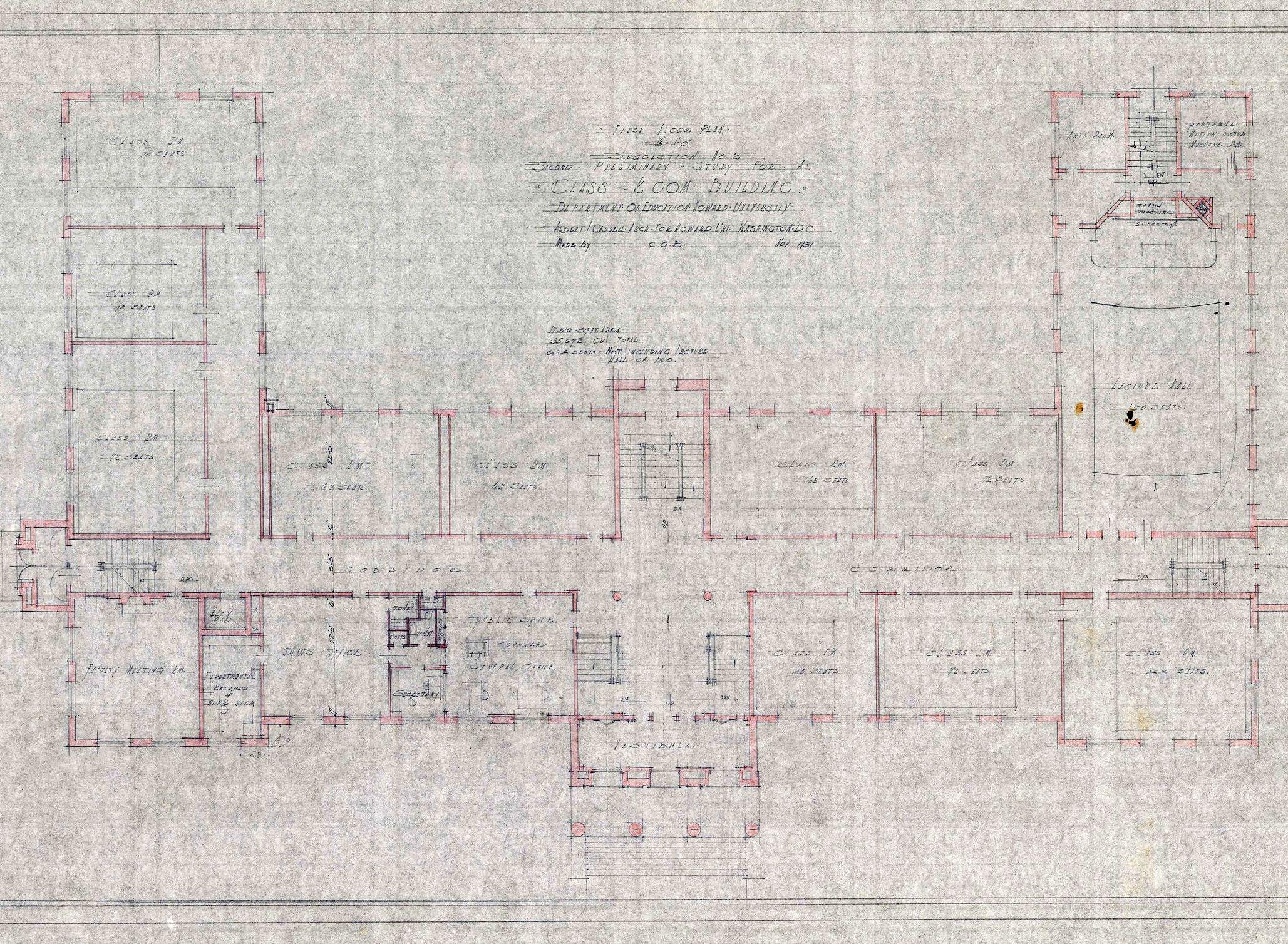 Douglass Hall first floor plan, 1931 drawing (HU MSRC), p. 106