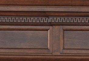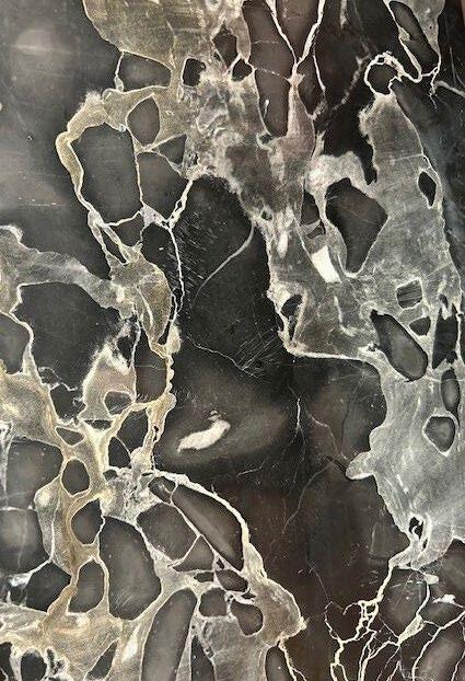 This detail is from the fireplace surround within the historic Frederick Douglass Memorial Hall reading room. The black marble with white and gold veining is assumed to be Nero Portoro, typically quarried in Porto Venere, Italy, also known as the Gulf of Poets.