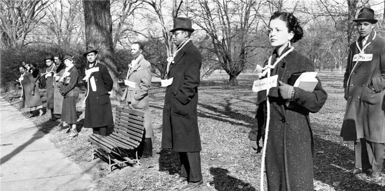 Howard students picket the National Crime Conference in D.C. in December, 1934, when leaders of the Conference refused to discuss lynching as a national crime (Getty Images), p. 79