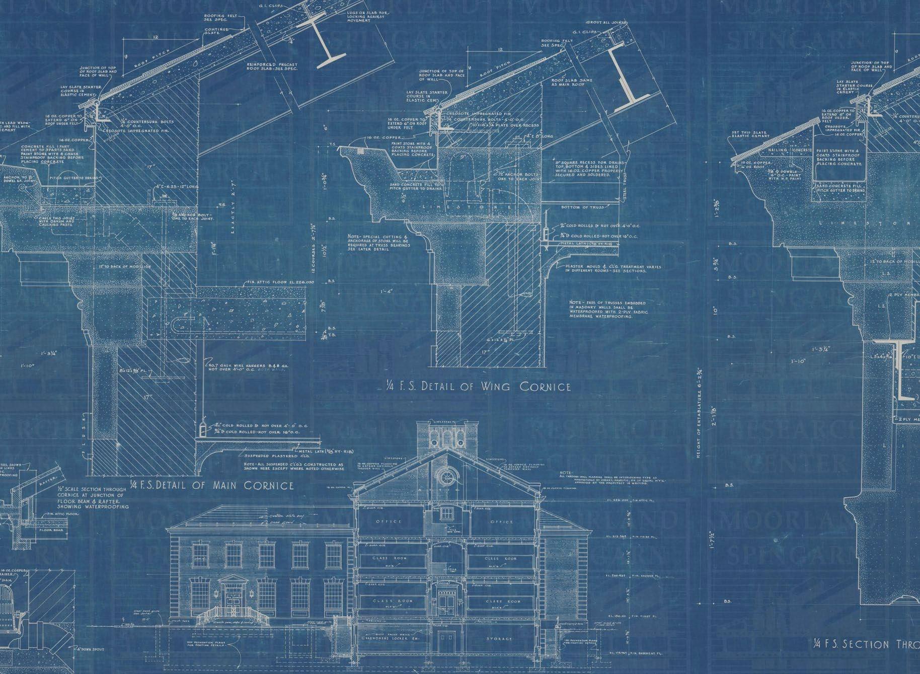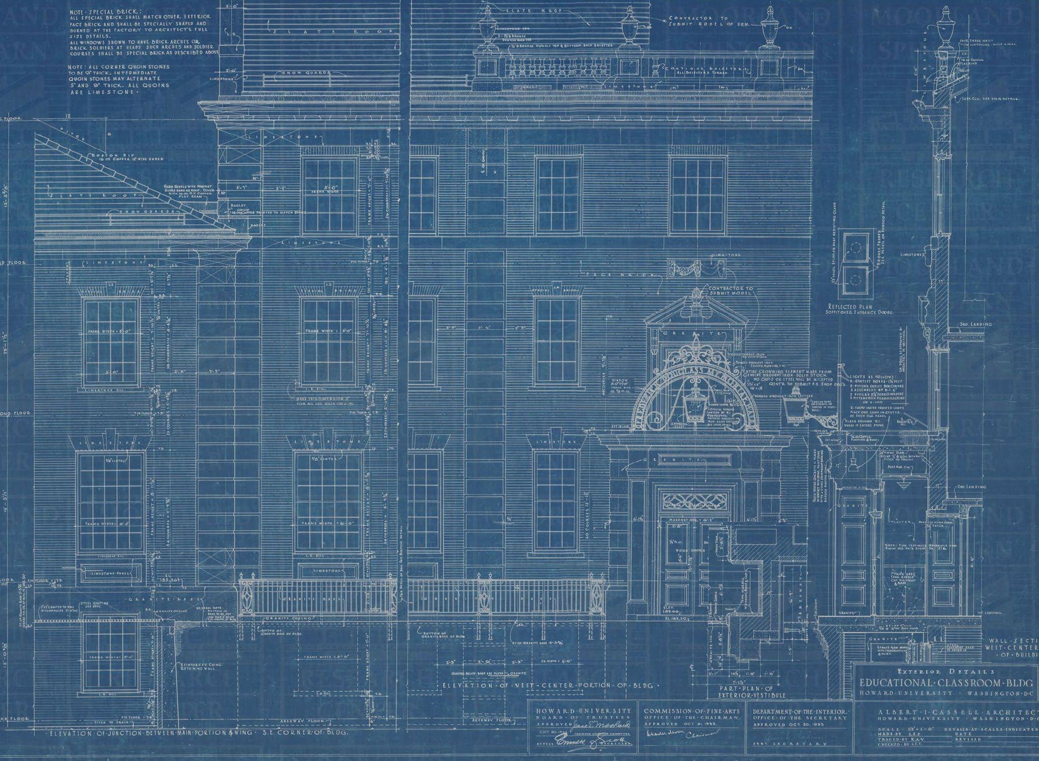 Douglass Hall exterior details, 1933 blueprint (HU MSRC), end pages