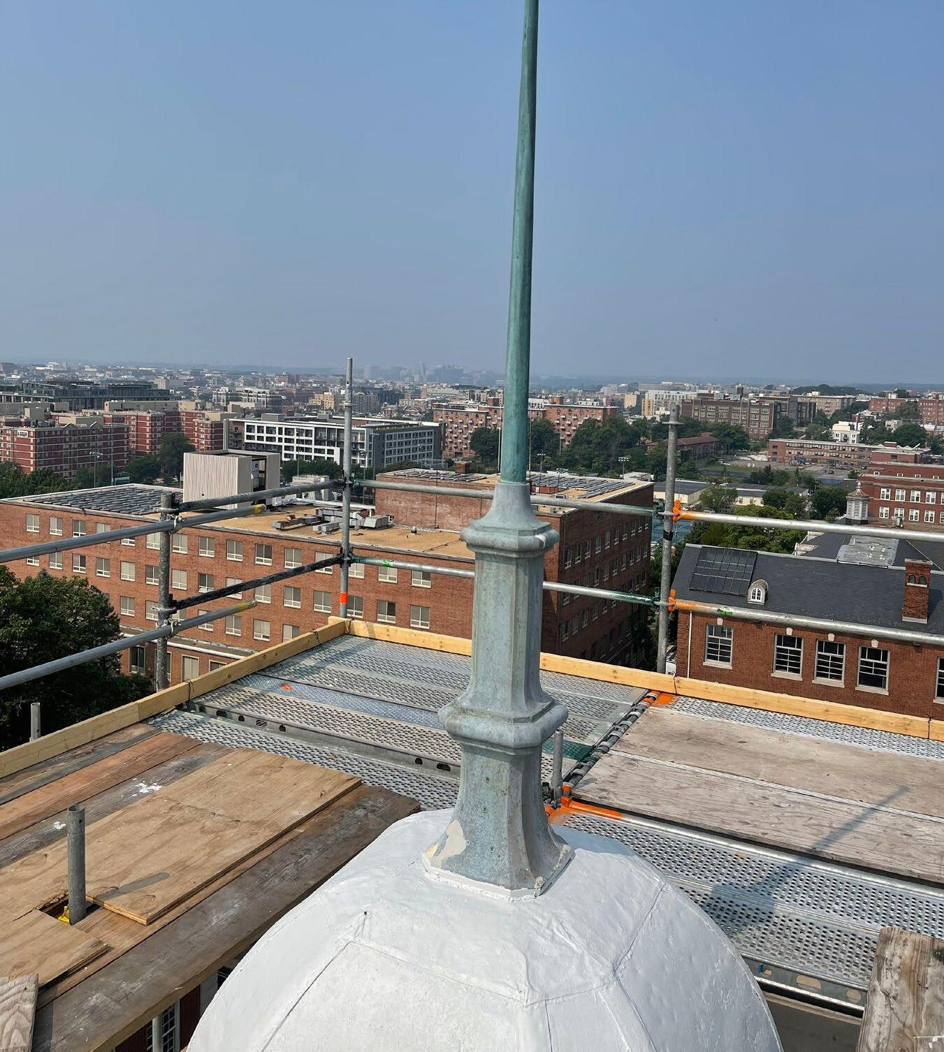 Three exterior / cupola views of Frederick Douglass Memorial Hall during restoration and modernization (photography by Raymond Curtis), p. 85