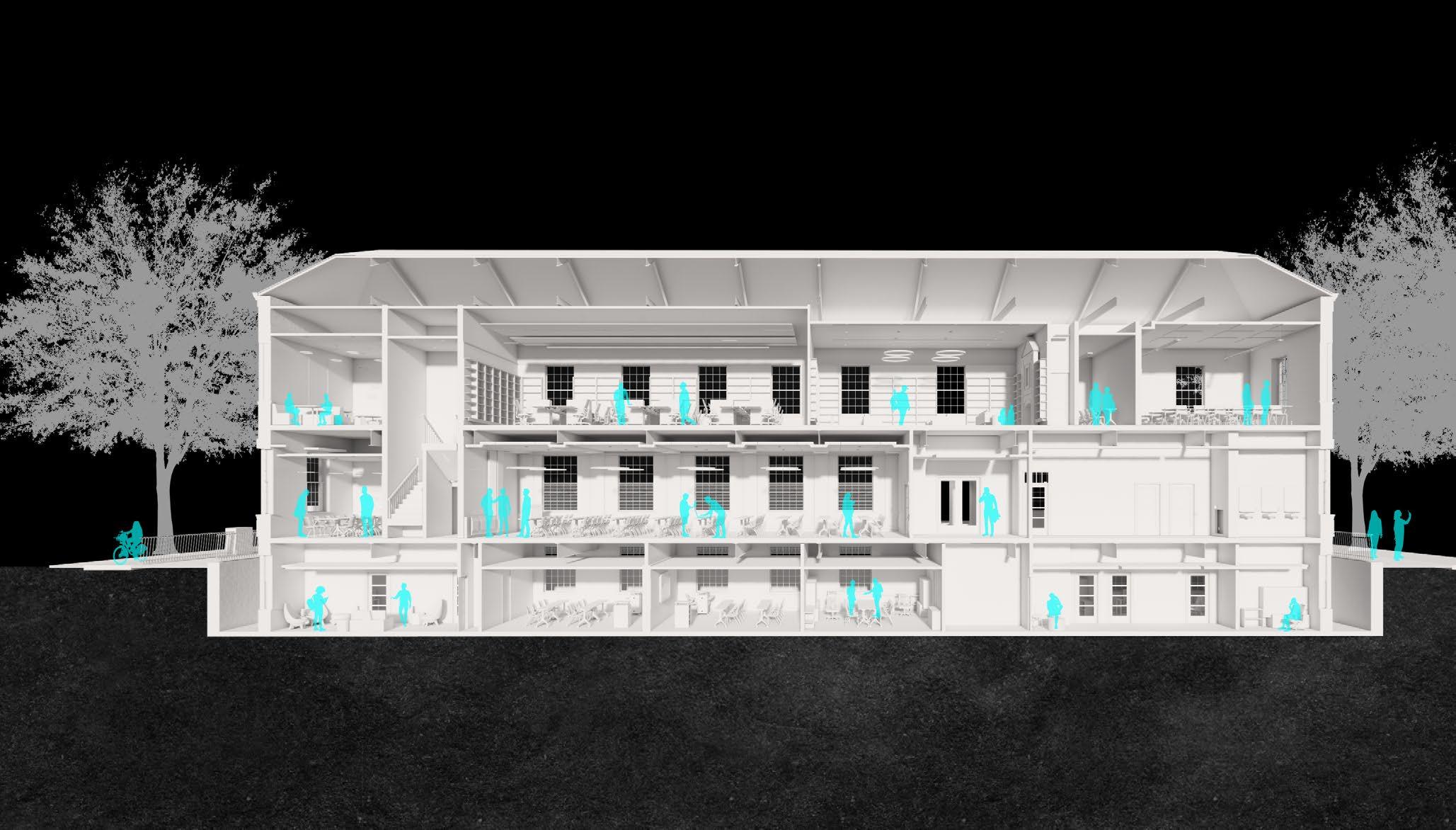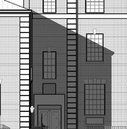 Douglass Hall section perspective showing connection from 6th Street entry gates to the Yard. p. 100
