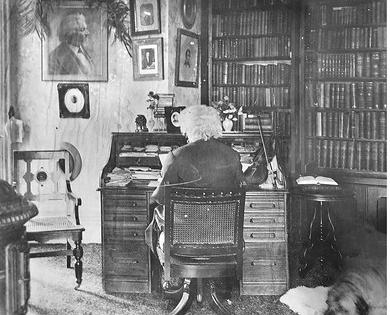 Top: Douglass in his study at Cedar Hill, his home in Washington, D.C. Bottom left: Douglass with his second wife, Helen Pitts Douglass (sitting), and her sister, Eva Pitts. Bottom right: 1894 cabinet card photograph of Douglass with his grandson, Joseph Henry Douglass, an internationally renowned concert violinist.