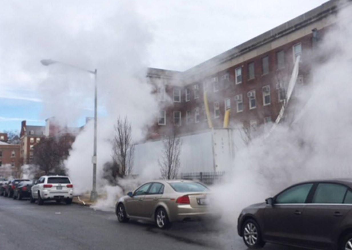 Steam leaking from fractured steam piping during deep freeze weather event, 2018 (The Washington Post), p. 80-81