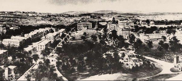 grouped academic buildings around expansive open spaces. Regrettably, this initial plan remained unimplemented.