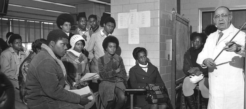 A timeline runs through chapter 3, pairing milestones from Howard University with national events. They show how Douglass Hall remains woven into our broader social consciousness. A set of program vignettes deepens that narrative, featuring the ROTC legacy, the civil rights era, the mission of The Journal of Negro Education, and “Bones of Truth,” a tribute extending the legacy of Dr. William Montague Cobb. For nearly five decades, Cobb used anatomy to expose racism and to replace the pseudoscience of racial hierarchy with evidence-based truth.