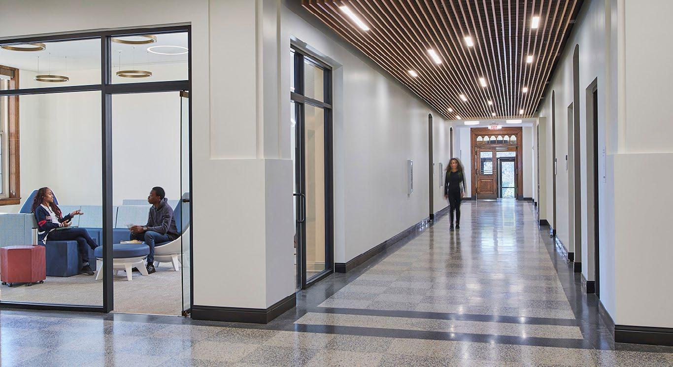 Restored Douglass Hall student commons and first level hallway, 2020 (Anice Hoachlander Photography), p. 89