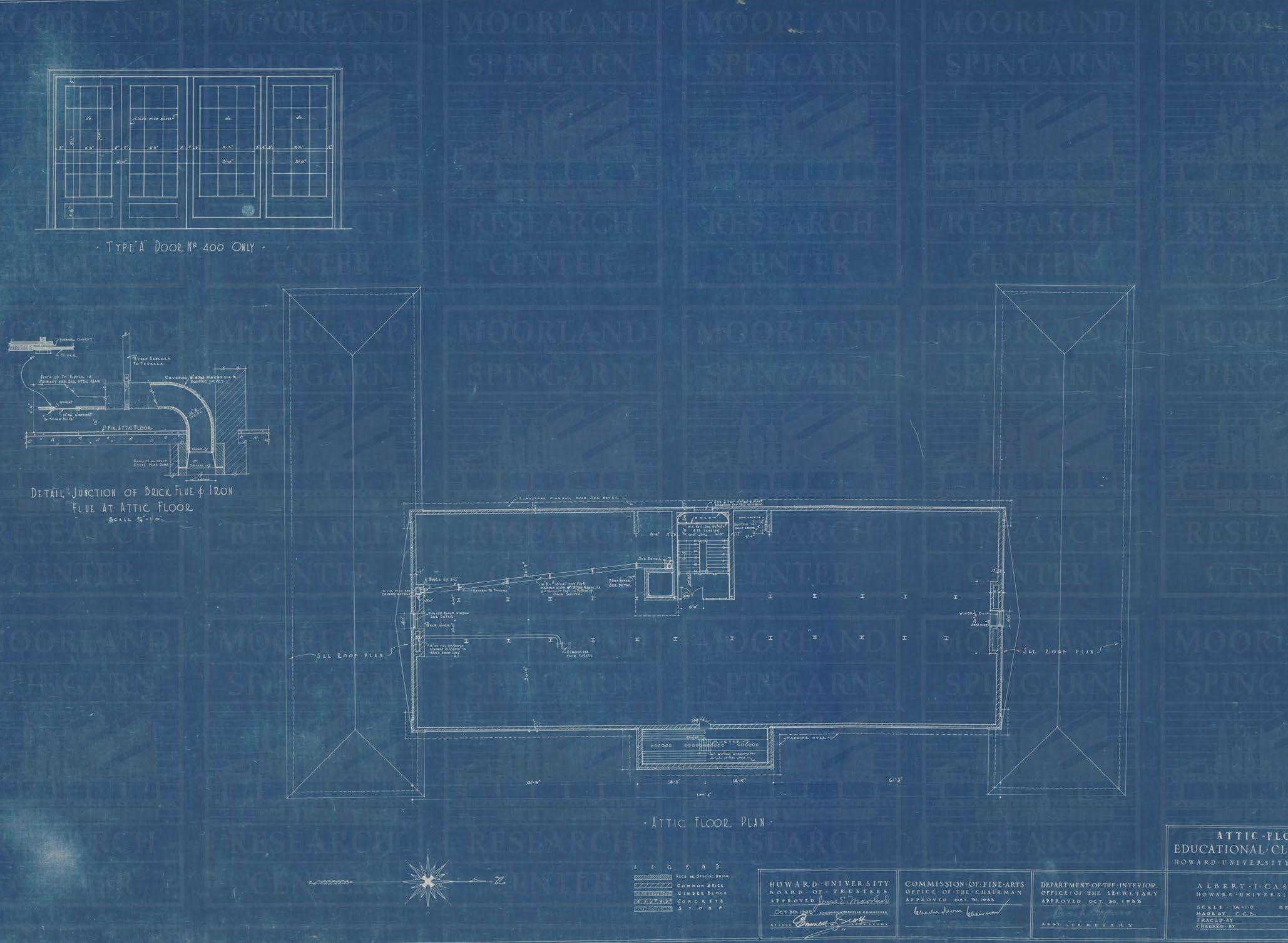 Douglass Hall attic plan, 1933 blueprint (HU MSRC), p. 112