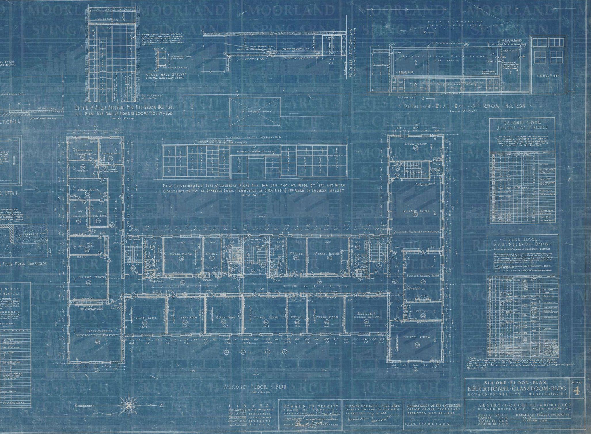 Douglass Hall second floor plan, 1933 blueprint (HU MSRC), p. 108